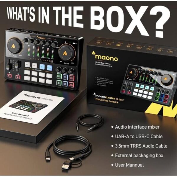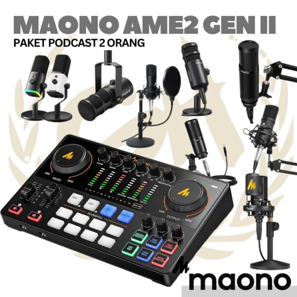 PAKET PODCAST 2 ORANG, MAONO AME2 Gen II Maonocaster Live Streaming & Portable Podcast Console | Soundcard AM – E2 Mark 2