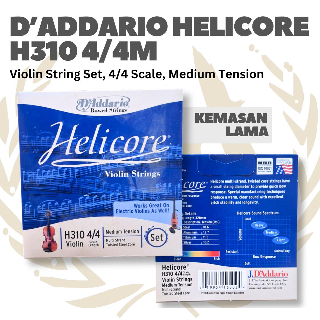 D’Addario Helicore H310 4/4 Violin String Set, 4/4 Scale, Light & Medium Tension – Senar Violin Set Original – H310-4/4M Medium
