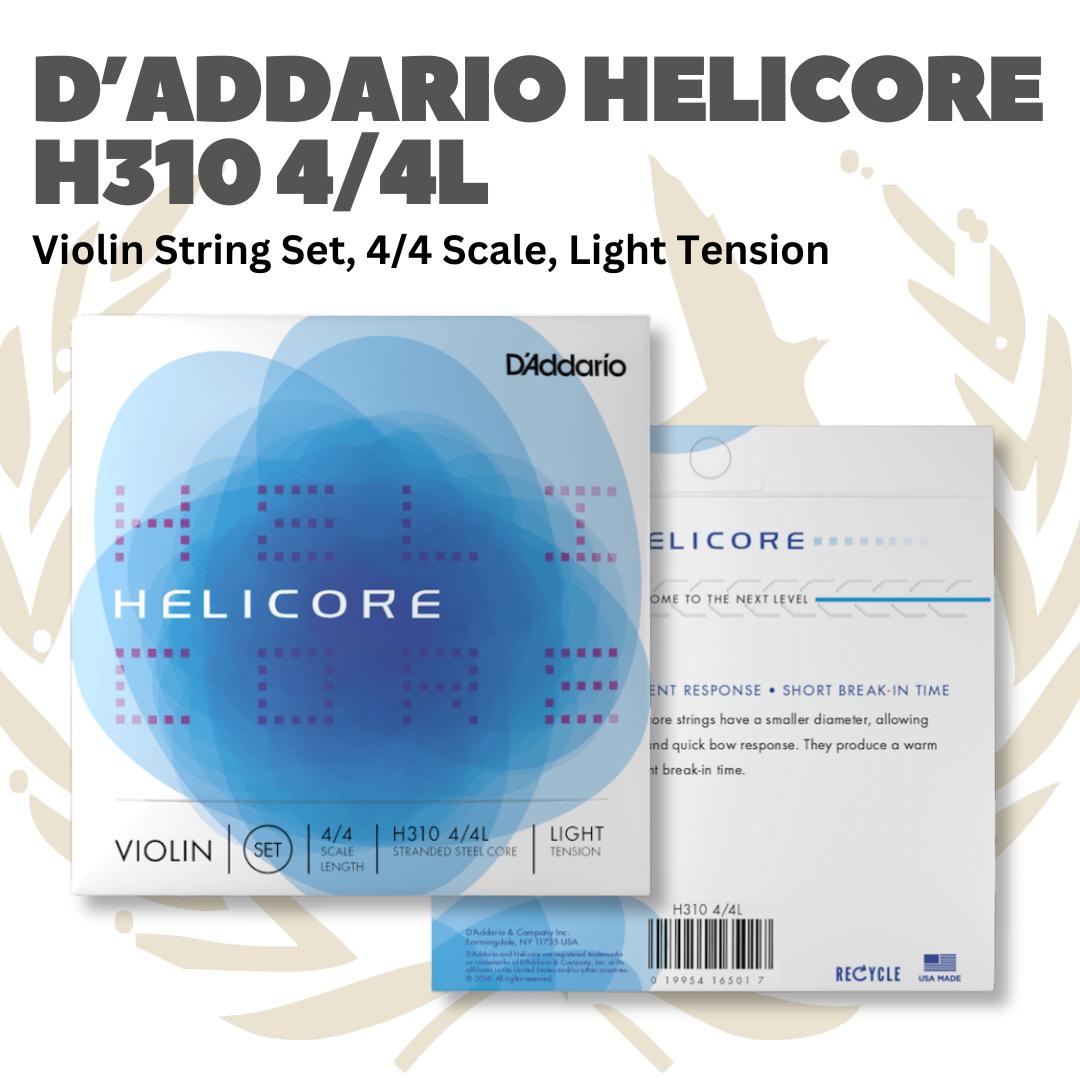 D’Addario Helicore H310 4/4 Violin String Set, 4/4 Scale, Light & Medium Tension – Senar Violin Set Original