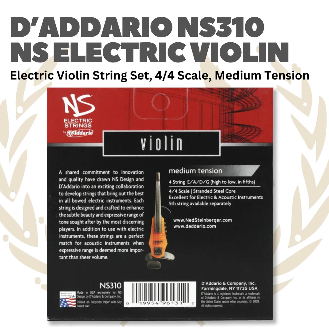 D’Addario NS310 NS Electric Violin String Set, 4/4 Scale, Medium Tension – Senar Violin Listrik Set | Senar Violin Elektrik Set Original