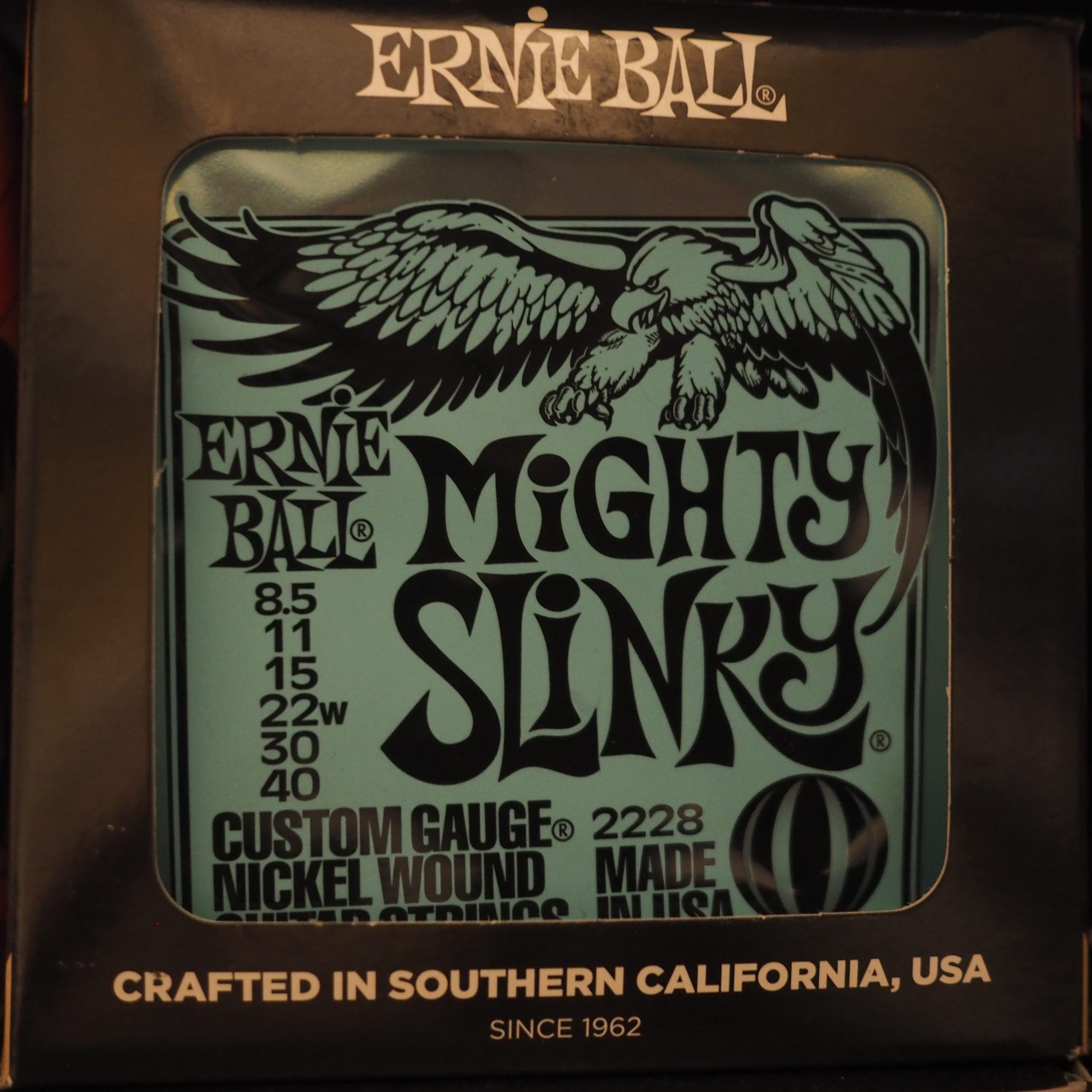 Mighty Slinkys berada di tengah-tengah senar Super Slinky dan Extra Slinky yang populer sembari menghadirkan ketegangan yang ringan di keenam senar.