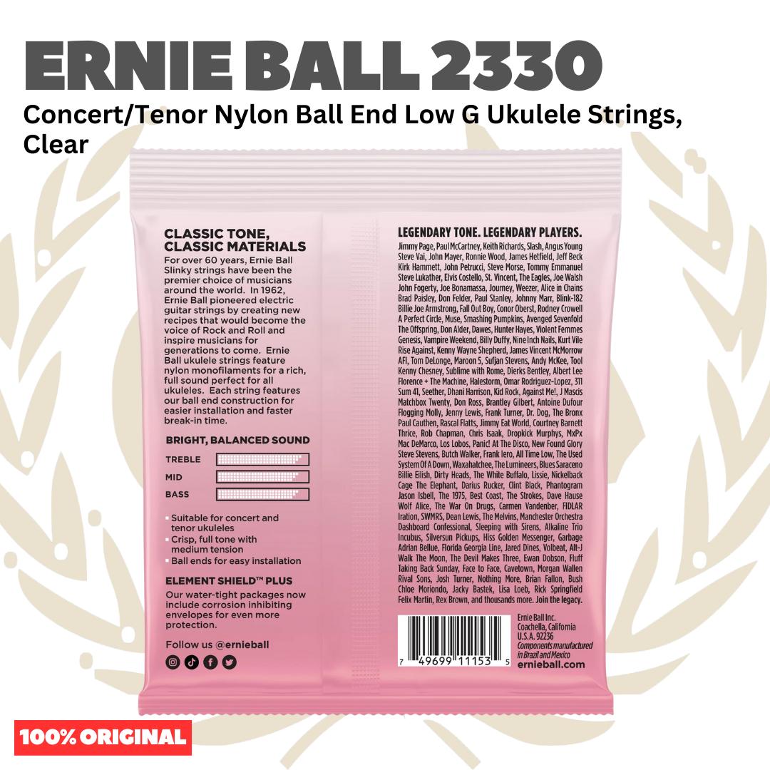 Ernie Ball 2330 Concert/Tenor Nylon Ball End Low G Ukulele Strings, Clear – Senar Ukulele