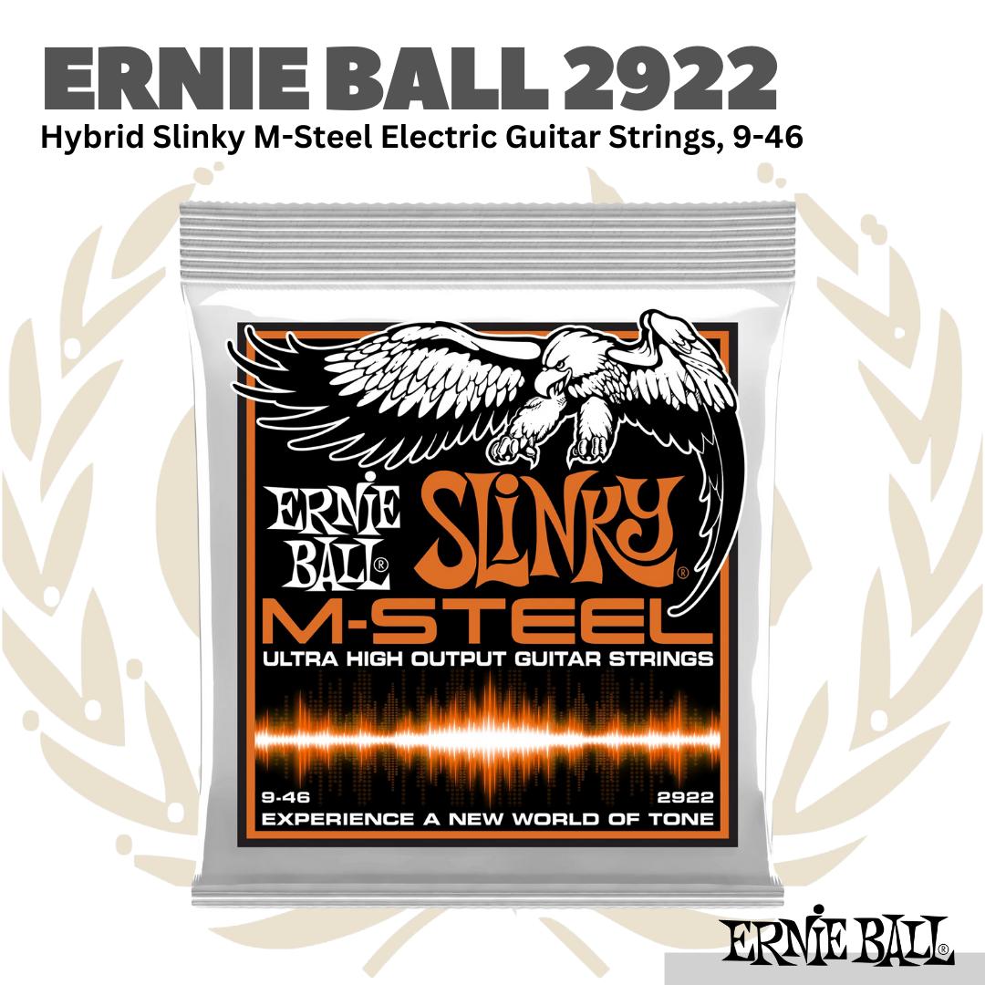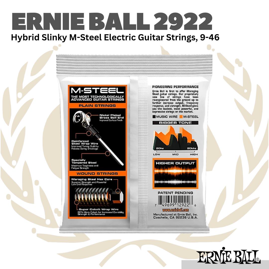 Senar Ernie Ball M-Steel Electric Guitar dibuat dari alloy Super Cobalt yang digulung di kabel inti baja Maraging berbentuk hex, menghasilkan nada yang lebih rich dan penuh dengan respon low-end yang powerful. Senar gitar elektrik plain M-Steel dibuat dari baja tempa untuk ketahanan maximum. Senar plain elektrik ini juga memanfaatkan gulungan baja di sekitar ujung bola yang mengurangi risiko terlepas, bocor dan tetap senada dengan baik dibandingkan senar plain konvensional. Gauges .09, .011,.016, .026, .036, .046