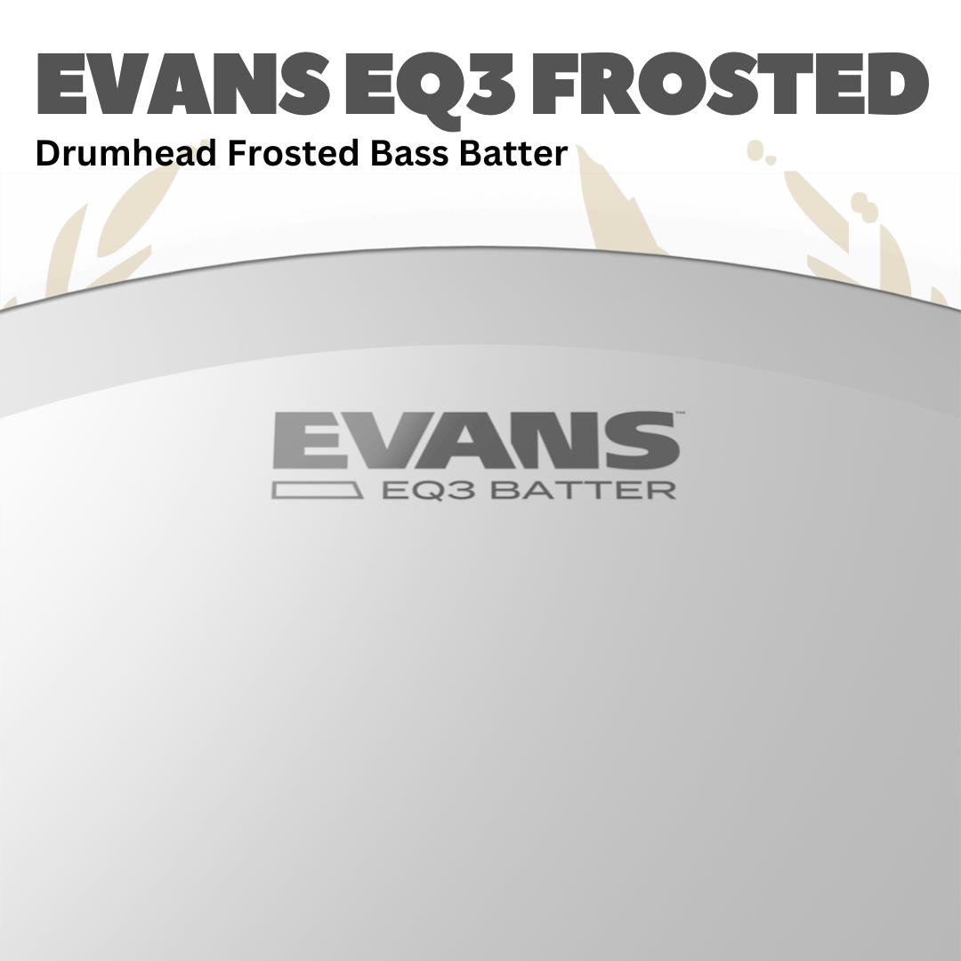 EVANS EQ3 Frosted bass drumheads boast articulation and endurance guaranteed to liven up your playing. EQ3s feature two plies of 6.5mil film and an internal overtone control ring for a controlled low-end rumble and focused attack. Overall, this bass batter has moderate attack, sustain, and brightness. This frosted drumhead also features Level 360 Technology.