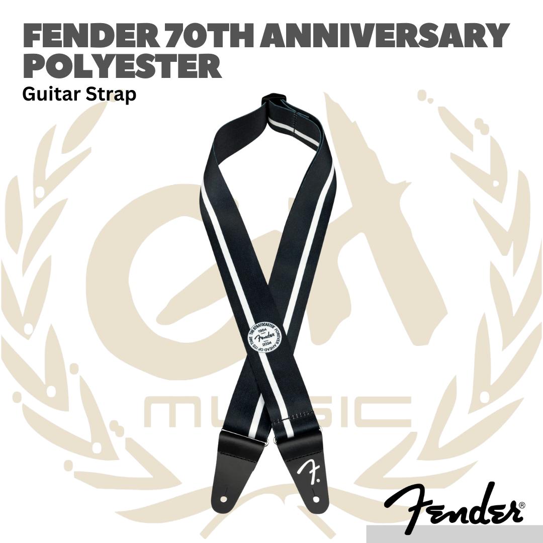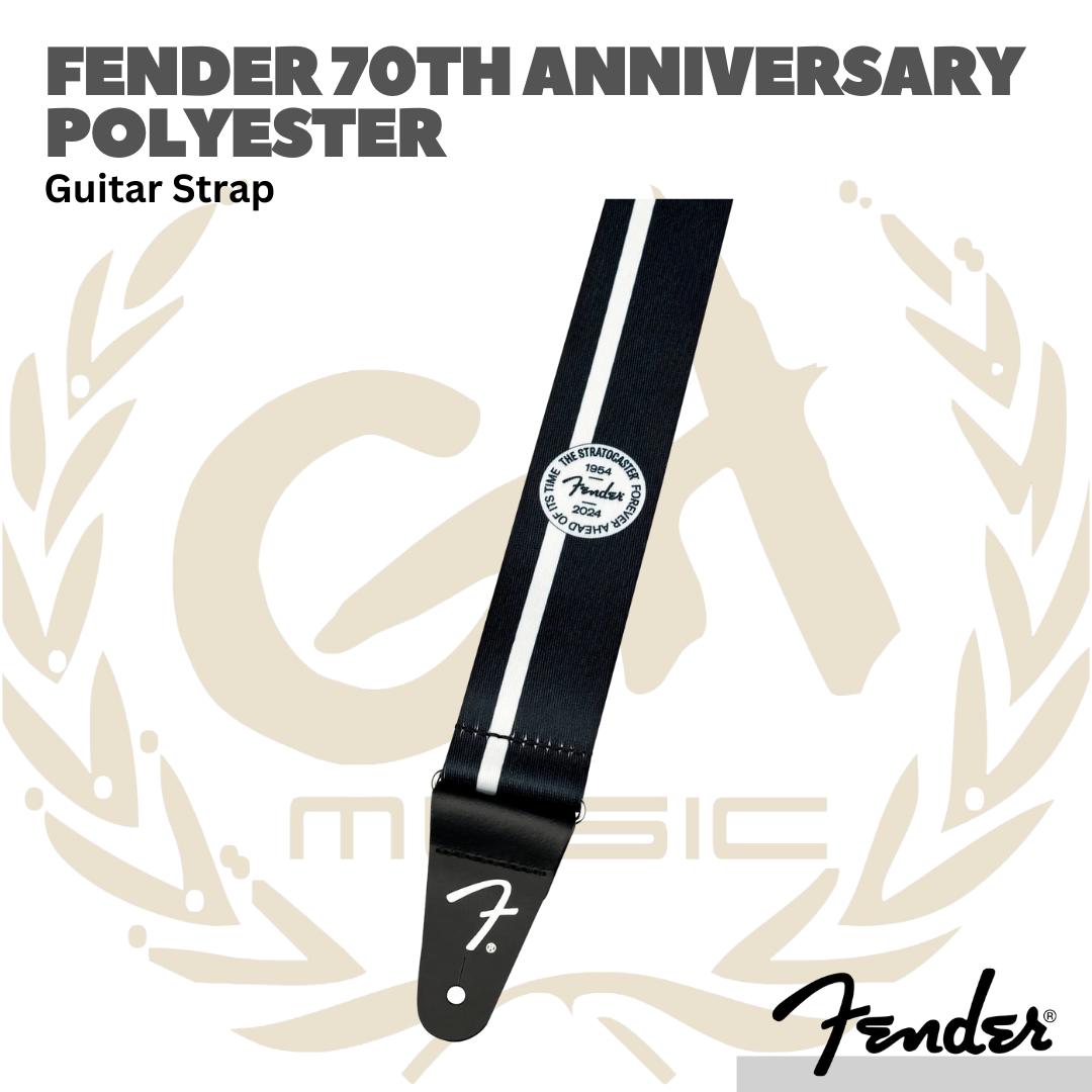 Celebrate the 70th Anniversary of the beloved Strat with the 70th Anniversary Polyester Strap. Adorned with the Anniversary Logo, this printed polyester strap includes a retro striped design and leather ends for ultimate comfort and playability.